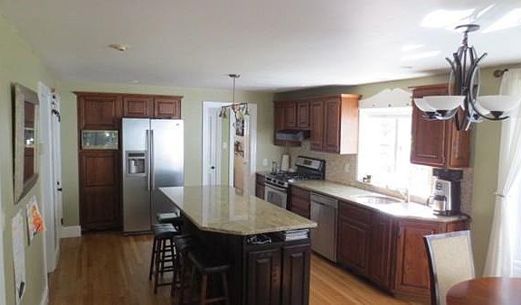 - Kit Dscrp: Dining Area, Flooring - Hardwood, Countertops - Stone/Granite/Solid, Kitchen Island, Bathroom - Half