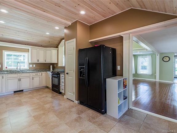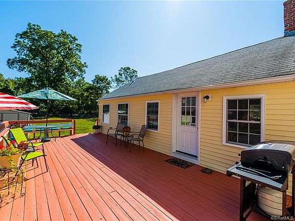 Immediately upon entering you will know this is your home! Greeted by a new kitchen, fully applianced, with impressive wood cathedral ceilings and 1/2 bath. Spacious master bedroom with full bath and large closet has first floor location. Unique dining room with cathedral ceiling, hardwood floors open to large living room perfect for entertaining. Front room with french door has versatility of use as bedroom or office. Upstairs you will find 2 large additional bedrooms - both with direct access to full bathroom. Have you ever wanted to have animals? Small barn perfect for goats, chickens, rabbits. Large private deck overlooks flat open yard. Short distance to Bluff Point- hiking, swimming, fishing. River walkway to state park. Easy on and off Route I-95, convenient to Electric Boat, Pfizer and shopping. Come find your new home!!
