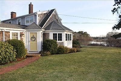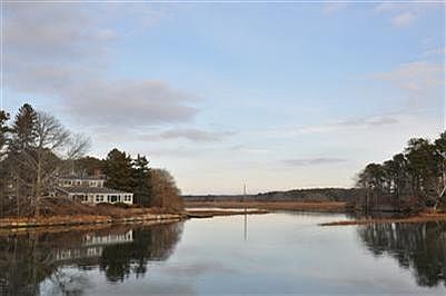 This spectacular waterfront home and private dock with access to Nantucket Sound sits on almost 2 acres of professionally landscaped grounds. It offers three bedrooms and two and a half baths with a first floor master suite. The open floor plan with cathedral ceiling, gourmet kitchen with sub-zero refrigerator, soap stone counter tops and island, and family room with fireplace allow for fabulous gatherings all while soaking up the spectacular views. If the water is not enough for you, this beautifully appointed home also overlooks Bell's Neck Conservation Land boasting 259 acres of serene landscape.