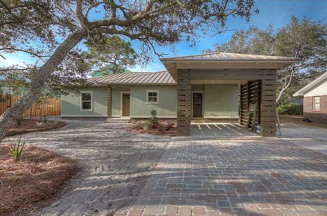 This is a home for the buyer who appreciates quality and attention to detail. Extremely well built from the insulation to the stainless steel door hinges to the stucco application, to the standing seam metal roof and impact glass doors and windows! This is a home that will not need any maintenance for years to come! Three bed/2 bath, split floor plan, cortec flooring throughout, open floor plan, large laundry room, soft close all wood cabinets, granite counters, high end finishes throughout. 2016 construction on a beautiful landscaped lot with clusters of natural scrub oak and paver drive, again with low maintenance in mind! You have a peek a boo view of the water from the back yard and with just a hop, skip and a jump you'll be on the beach!