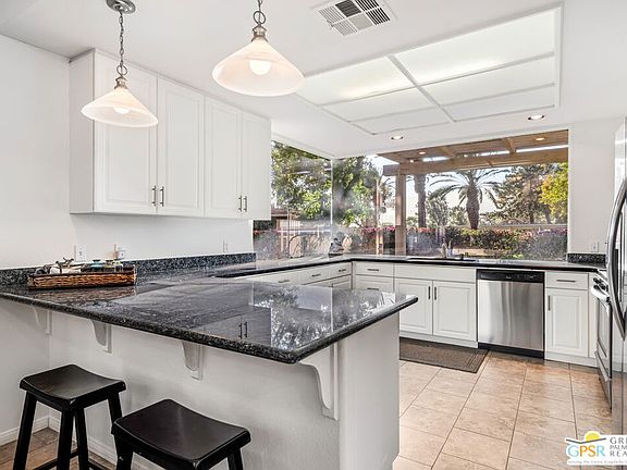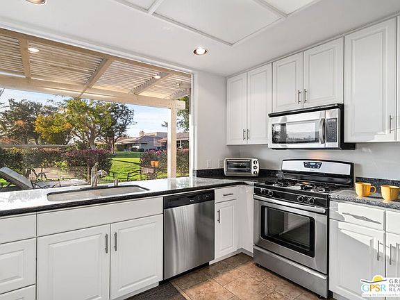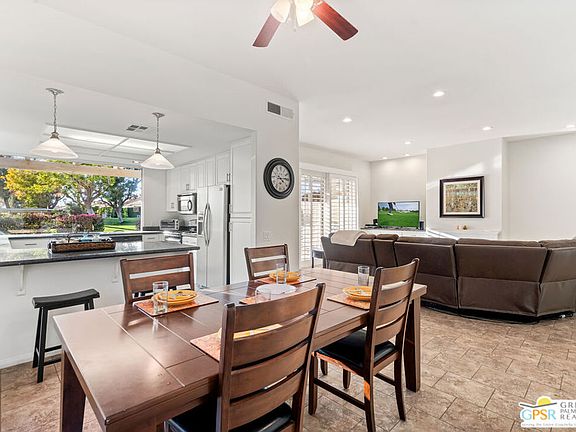 This TURNKEY FURNISHED 3-bedroom, 2-bath condo is move-in ready combining the comforts of home with a resort-style lifestyle in the prestigious Mission Hills Country Club where YOU OWN THE LAND! A private gated courtyard welcomes you into the great room, where expansive nearly FLOOR-TO-CEILING WINDOWS frame lush landscaping, breathtaking UNOBSTRUCTED MOUNTAIN VIEWS, and a dining space ideal for intimate dinners or lively gatherings all complemented by a breathtaking backdrop. The spacious UPDATED KITCHEN is both stylish and functional featuring a large corner window that floods the space with natural light. The LARGE PRIMARY SUITE offers direct access to the courtyard and includes ample closet space, along with a bathroom featuring double vanities, a soaking tub, and a separate shower. Two comfortable guest rooms share a well-appointed three-quarter bath, with a separate entry allowing it to double as a powder room for added convenience. Designed for effortless indoor-outdoor living, the rear patio offers a mix of covered and open spaces, perfect for lounging, al fresco dining, or just taking in the awe-inspiring mountain views. Just steps away, a sparkling pool and spa provide the ultimate retreat for relaxation and rejuvenation. A TWO-CAR GARAGE, PLUS an additional stall for GOLF CART PARKING, ensures ample storage and convenience. Located in Mission Hills East, this home offers the best of desert living within a community known for its world-class golf, tennis, and social amenities. Don't miss the chance to make this retreat your own!