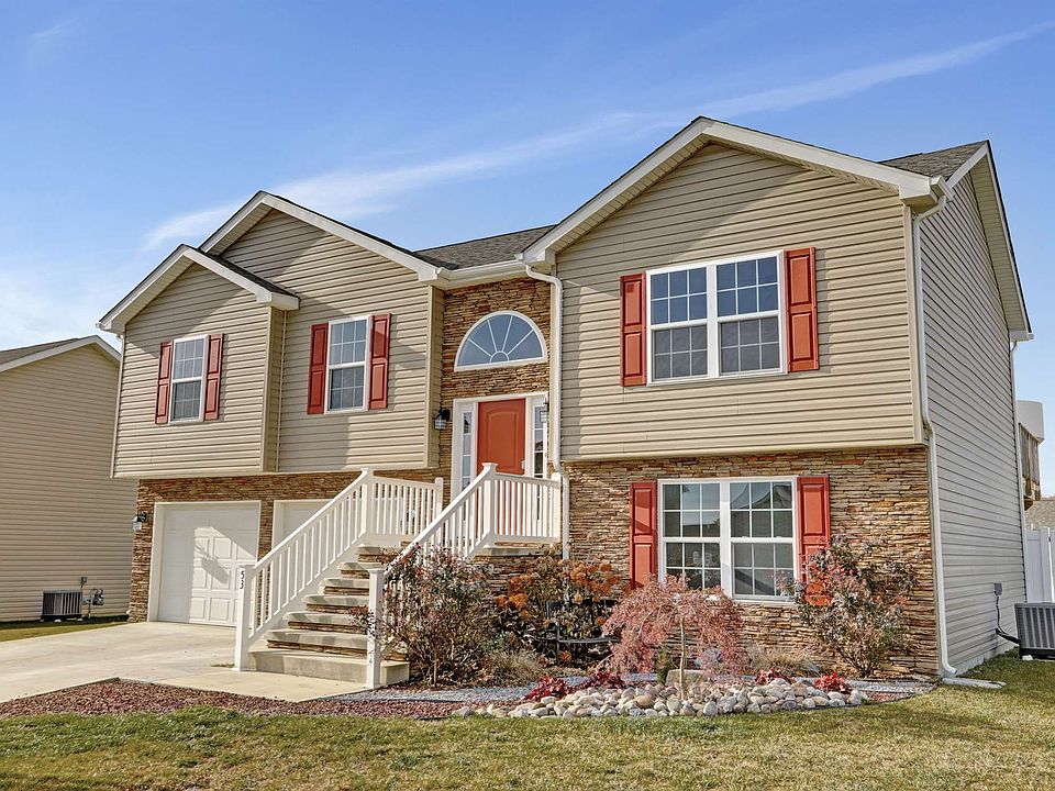 "Don't miss out!! Great curb appeal with this beautiful split foyer home. In a great neighborhood and boasts 4 bedrooms and 3 full bathrooms. You'll love the oversized 2 car garage and fully fenced back yard. On the main living level, you will find dark hardwood flooring throughout. 3 bedrooms on this level including a master suite overlooking the backyard. The shared kitchen and dining area include all stainless steel appliances, granite countertops with an island to match. The sliding glass door there delivers you to a deck also overlooking the backyard. Back inside, this level also conveniently contains the laundry room which is equipped with a matching Samsung washer and dryer. Downstairs you have the 4th bedroom as well as a bonus room, which has both a full bathroom attached and an exit into the fenced yard. A water treatment system is installed and conveys. Whether this is your first home or tenth you'll be happy to hear this beautiful home even comes with a free 1 year home warranty!! "