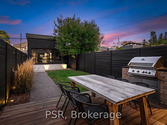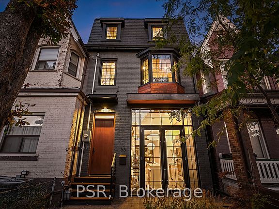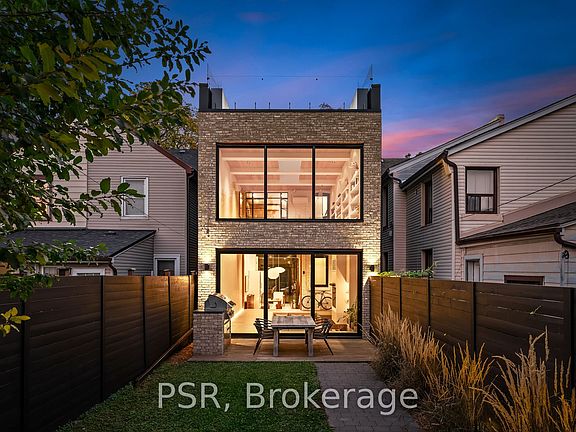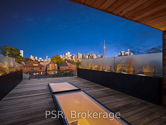 Discover an extraordinary architectural residence on Palmerston Avenue, one of Trinity Bellwoods' most sought-after streets. With history dating back to the 1860s, the home has gone through an extensive transformation, including a remarkable custom addition crafted by Whitaker Construction, a firm widely regarded as one of the city's leading builders, elevating it into a true design landmark. Featured earlier this year in the Toronto Star in an article titled "Is this the coolest living room in Toronto?" the answer is, yes. The main living space showcases striking 20-foot ceilings anchored by a sprawling sunken lounge, designed with a clean aesthetic that blends warmth with modern design. With east and west exposure, the combination of floor-to-ceiling glass and two large skylights allows natural light to pour through the entire home. The property features meticulous millwork in natural oak, micro-cement walls, heated concrete floors, and recessed lighting that together create a sense of calm sophistication. A beautifully designed mezzanine level, part of the custom addition overlooks the main living space and features a serene library with arched custom shelving, creating an inspiring, light-filled vantage point with views of the city skyline. This thoughtfully planned 3-bedroom residence includes an entire third level dedicated to the primary retreat, featuring a spa-like ensuite that extends to an expansive private rooftop terrace, partially covered and perfectly positioned for Toronto skyline and CN Tower views. An oversized double-sided 1.5 car garage provides exceptional functionality, accommodating two smaller vehicles or offering ample additional space. The lower level includes a washroom and a dedicated area ideal for storage. Celebrating craftsmanship and innovation at every turn, every element has been curated with exceptional intention, resulting in a home that is both artful and livable, an inspired piece of architecture rarely found in the city.