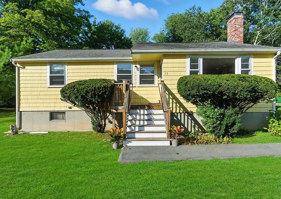 Lovingly maintained, move-in ready ranch-style home offers an ideal choice for first-time buyers or anyone seeking the ease of single-level living. This charming three-bedroom, one-bath home offers a freshly painted interior with a bright and spacious living room featuring a cozy fireplace, dining area, and an oversized eat-in kitchen with a skylight, new flooring, and refreshed cabinetry. Each of the three bedrooms is filled with natural light, including the primary bedroom which also boasts a skylight. The lower level offers great potential for expansion with tall ceilings and plenty of space—ideal for a future home office, family room, or workshop. Step outside to enjoy a rear deck overlooking a generous corner lot, providing ample space for outdoor living and entertaining. Ideally located just minutes from local schools, parks, and everyday amenities, this home combines comfort, convenience, and flexibility. Don’t miss your chance to make North Reading your new home and experience