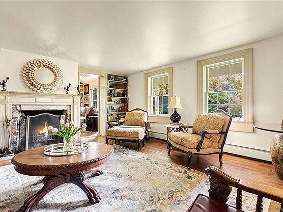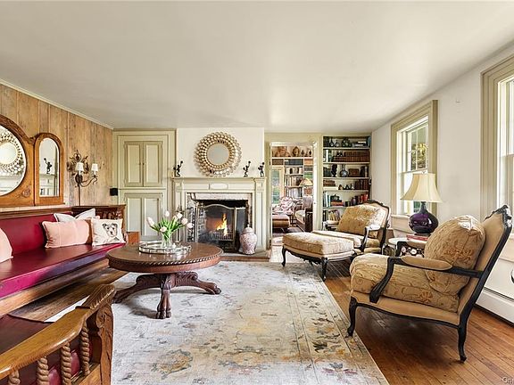Quietly located at the end of the country road surrounded by farm and preserved land. Charming antique with character and quality. A home for all the seasons from the cozy library on a fall day to the sun filled stone patio for long summer evenings. Updated kitchen that opens to large family room and adjacent to the formal Dining room. First floor bedroom with loft sleeping area. Living room with fireplace and original wide plank hardwood floors and wood beams. Primary bedroom with full abundant closet space and brick fireplace and beautiful views from the balcony. Plus room for additional family or guests in the converted Barn Guest house with 1 bedroom full bath and kitchen.