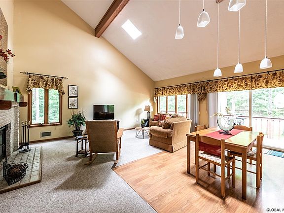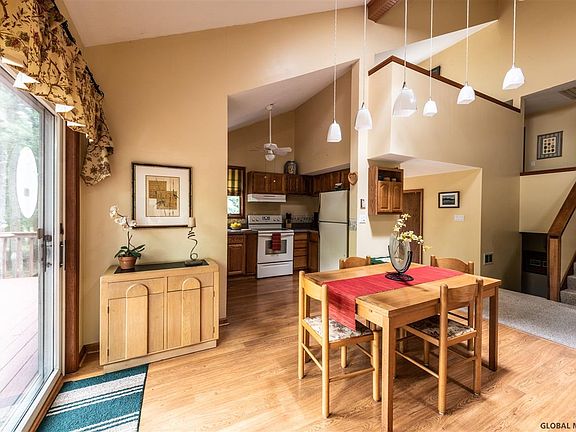 This rustic modern home is open floor plan with sliding glass doors to a wrap around deck. There are additional decks off the master bedroom and loft. The bedrooms are freshly painted with new carpet. The upstairs bathroom is newly renovated with a ceramic tiled walk in shower. It is located in the Lake Forest Homeowners Assoc. that has a beautiful beach with expansive lawn and clubhouse and deeded dock space. Low taxes and low association dues. Close to Gore Mountain and West Mountain ski areas. Pontoon boats are not allowed due to the configuration of the docks.