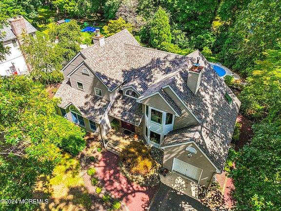 WELCOME! ... to this wonderful Lincroft colonial home on a quiet street, just a few blocks from the reservoir! Fully renovated to 1 wall in 1992, a 2-story foyer greets you into this center-hall with LR/FR with 2 sided fireplace, eat-in island kitchen with prep sink, granite SS appliances and porcelain tile. Hardwood throughout main living space and bedrooms, including master with 2 walk in closets, bath with radiant heat, spa tub, double sink and walk in shower. Generous 2ndary bedrooms! The yard is your summer playground with 2 sets of sliders leading to a full paver patio and a 36x16 inground liner pool. Finished basement, new roof, new A/C and HW tank round out this lovely home. Easy to all highways, downtown Red Bank, parks and schools.