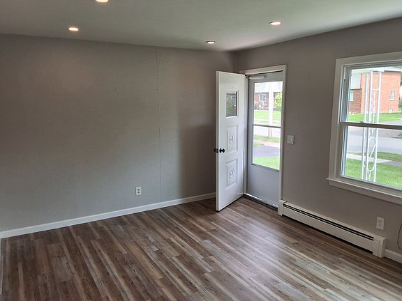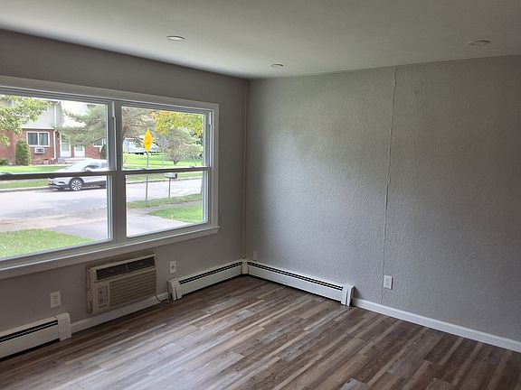 Come check out this recently updated 2 bed, 1 bath apartment, and make it your home! Quiet street with off-street parking. Fresh paint throughout. Kitchen recently updated with electric stove, brand new refrigerator, abundant storage including pantry with new shelving. Recessed lighting on the first floor. Modern, quiet, comfortable baseboard heat. Air conditioning unit in the living room. Spacious closet in each bedroom. Basement walls and floor freshly painted with abundant lighting. Do your laundry at home with washer and dryer hookups. Dehumidifier in basement to keep it dry and healthy. Single, private, secure garage space with keypad and MyQ connectivity. Separate utilities. Lawn mowing and main driveway snow clearing included. Call to set an appointment today!