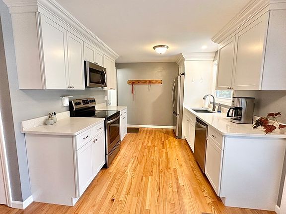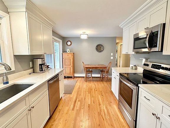 Sweet 3 bedroom, 2 bath ranch in a great Easthampton location with easy access to major routes that will make commuting a breeze. Completely renovated in 2018, all the updating has been done for you. Beautiful kitchen with quartz counters, stainless steel appliances, and slider out to the large deck. The finished basement with full bath makes a great den, office, playroom or work out space. Wood floors in living room, hallway and bedrooms. Fenced in private back yard offers great play space for people and pets. Two sheds. Oversized one car garage with room for a work area.Whether you are looking to downsize or just looking for a home that is move in ready--you found it! This will not last! Showings begin at Open House Saturday, May 6th, 10 to 1.