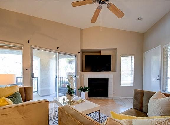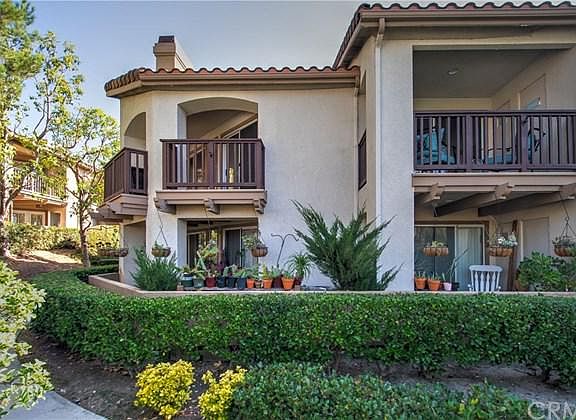 Great location, in beautiful and well maintained Bella Ventana community. This is a corner home overlooking the pool. This is 2 bedroom,2 baths with open floor plan. Light and bright. Fireplace in the living room and pool view give restore like feel every day, with one car detached garage and one assigned carport. The Master bedroom has its own private balcony, mirrored closet with a jetted tub for a spa-like soaking tub and ceiling fan.2nd Balcony is off the living room. Low HOA and Tax and No Mello Roos. Close to Mesa Linda community park with Basketball courts, Tennis Courts, and Picnic area. Walk to top-rated schools. Have access to Rancho Santa Margarita lakes, Beach club, Parks, Playgrounds, sports courts. Easy excess to 241 Toll Road.