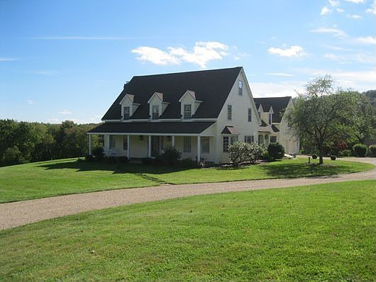 Fabulous reproduction farmhouse with charming details on a double lot with over 5 acres. Newly renovated kitchen opens to family room with fireplace and walks out to sunporch which overlooks the extensive fields. Perfect for horses, mountain views.
