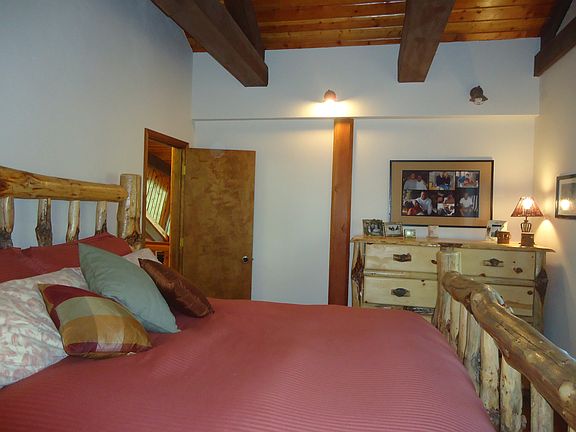 Million $ View. Fronts on golf course, but high above it. Light & bright. Two brand new decks. Done in Southwest colors. Very comfortable. Oversized log double garage has a shop & full upstairs. Large private lot. Good year-round access. A Murphy bed converts the family room into a master bedroom, making it 4 bedrooms. Membership included for golf, swimming and tennis.