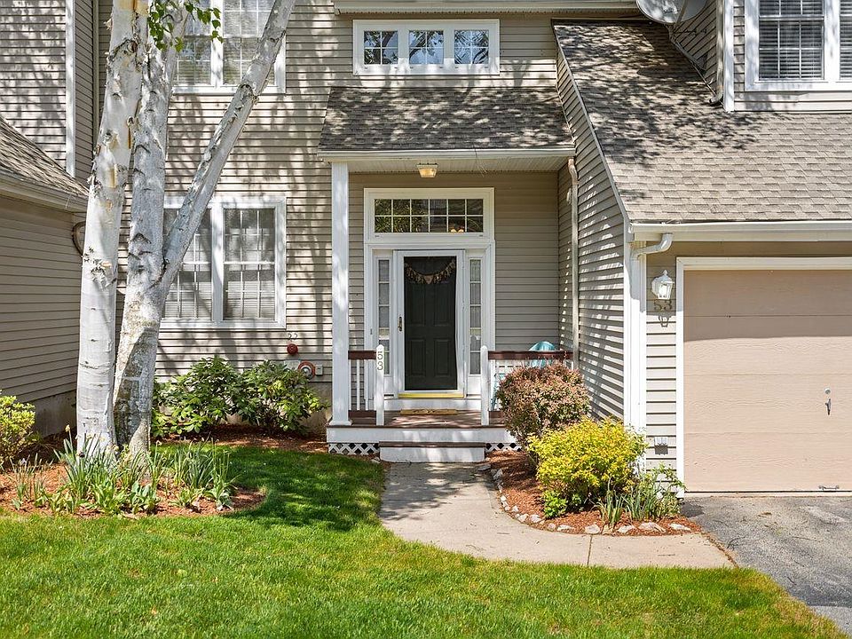 Highly sought after River Glen townhouse. Hardwood floors throughout the first floor. Granite kitchen with white cabinets is open to the vaulted ceiling living room with gas fireplace and deck- perfect for entertaining. Mud room and laundry off the 1 car garage entry. Double ceiling height foyer entry with a powder room. Second floor holds two spacious bedrooms, each with their own bathroom with granite vanities. The walkout basement is finished for extra living space. Enjoy the pool and club house. Maintenance free living at its best. Offers due by Monday May 22, 7pm.