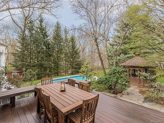 Dive Right In! This chic farmhouse colonial with show-stopping pool and gazebo setting features stunning designer finishes! Architecturally interesting, this home is nestled at the end of a lovely cul-de-sac. Fresh and fun with updated kitchen/great room, updated master bath and large addition with wonderful amenities! Zoom to your heart's content from the fabulous, tucked-away home office. The private backyard has mature perennials, tranquil pool, charming gazebo and party-ready screened-porch with TV for entertaining! Turn-key luxury with many new finishes! Finished, walk-out lower level has gym, bonus room, full bathroom and second laundry. Many recent enhancements. Get ready to vacation at home in one of New Canaan's prettiest spots with nothing left for you to do but move on in! Dive Right In! This chic farmhouse colonial with show-stopping pool and gazebo setting features stunning designer finishes! Architecturally interesting, this home is nestled at the end of a lovely cul-de-sac. Fresh and fun with updated kitchen/great room, updated master bath and large addition with wonderful amenities! Zoom to your heart's content from the fabulous, tucked-away home office. The private backyard has mature perennials, tranquil pool, charming gazebo and party-ready screened-porch with TV for entertaining! Turn-key luxury with many new finishes! Finished, walk-out lower level has gym, bonus room, full bathroom and second laundry. Many recent enhancements. Get ready to vacation at home in one of New Canaan's prettiest spots with nothing left for you to do but move on in!