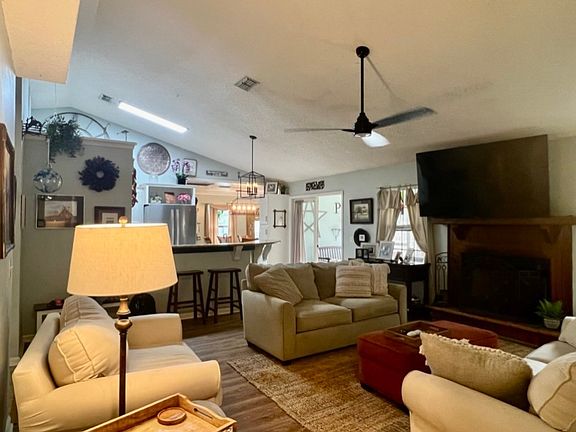 Lovely 3/2 with office in the county. Large 3/4 acre landscaped yard. Home features Family room, dining room, enclosed sunroom, vinyl plank floor & tile, meticulously maintained. Roof was replaced 2 years ago, new appliances, New Goodman HVAC in 2017, New water softener. 25x25 Metal building in back with roll up door with electricity and water, above ground pool with new pool pump. No HOA Call Today for Appointment.
