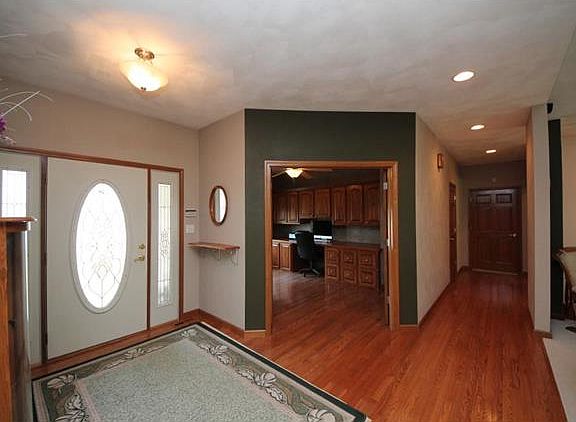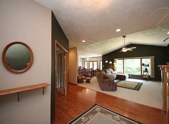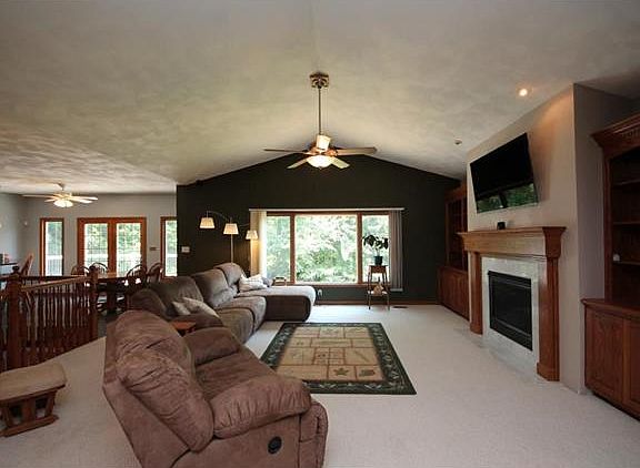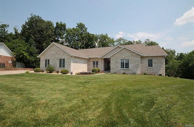 Over one acre of beautiful living! Wow! This place is just stunning with so many added bonuses! Fantastic living room has 9'' ceilings, fireplace and huge built in bookcases. Follow that into the dream kitchen. From the amazing appliances that stay, built in desk area, large pantry, and abundant counter and cabinet space. Wrap around counter creates extra seating. There is also a formal dining room that has been converted to an office. Master bathroom suite is vaulted and has a huge walk-in closet and the master bath comes complete with dual sinks, separate shower and jacuzzi tub. Finished walk-out basement is a real bonus. Family room (with another fireplace), rec room and another bedroom and full bath. There is also a large storage area and shop with shelving and workbench. The yard is built for entertaining! Large covered patio and huge upper deck with steps that lead to an awesome stone fire pit in your tree surroundings. Buyer to verify all info. Call Connie Kappert today for a tour--618-567-5429.