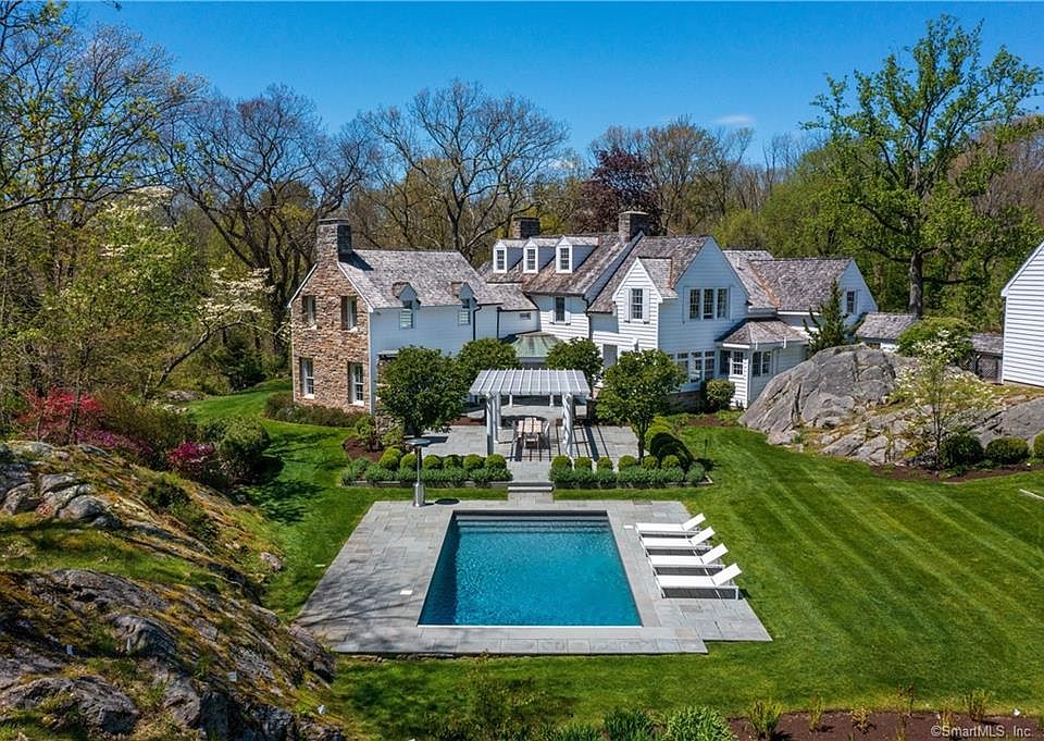 Updated Classic! Set on a quiet mid country cul-de-sac this superb 2.24 acre property with rolling lawns, beautiful rock croppings and mature landscaping is picture perfect. Pool, pergola, terracing and outdoor fireplace create a wonderful, private entertaining area. Open kitchen / fam room connects to mudroom and covered walk way to garaging with bonus room / gym / office above. Light filled sun room, dining room, butler's pantry all flow from the kitchen. First floor also features 6th bed / bath, study and oversized extra height living room with exterior access. Primary suite looks over the property and has large bathroom with extensive walk in closets. 4 further family bedrooms on this floor (all ensuite) Bonus room on the third floor is flexible as a further office or playroom. Close proximity to new Greenwich Country Day high school campus and also North Mianus Park for wonderful hikes / mountain biking. If you're looking for a blend of charm, character, and functionality with a beautiful setting this home is for you.