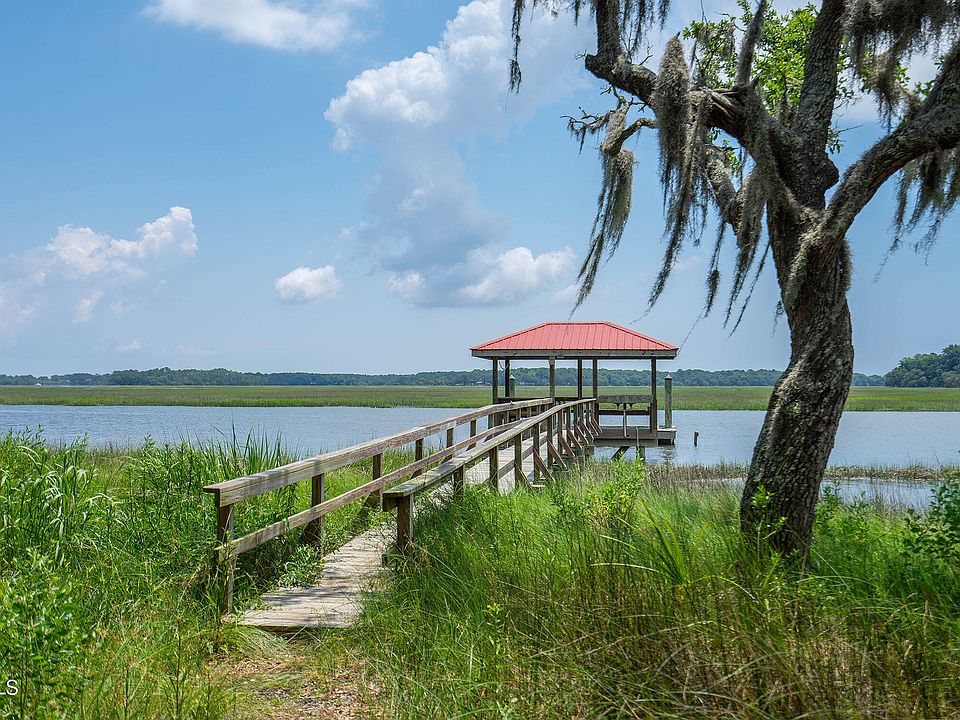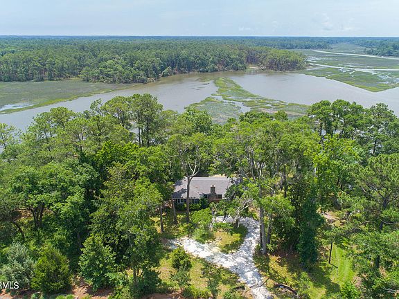 Folks have been waiting many years for this family property on Lady's Island to come on the market. This property has been owned and maintained by three generations of one family since the early 1950's. The custom designed brick ranch home was built in the early 1970's. It is a 3 bedroom, 2 1/2 bath nestled among Oaks on a point with a 180 degree panoramic view of Little Lucy Creek and vast salt marshes. The property faces the back boundary of Holly Hall Nature Preserve across the creek. The expansive views include both sunrise and sunsets. Being at the end of a quiet street with only one home nearby, this property is very private. Each bedroom has uninterrupted views of the creek and marshes. The living room is large with seating areas for TV viewing, and conversation in front of a slate fireplace. At the end of the kitchen is a combo mudroom and laundry and a large walk-in cedar lined closet. A two bay garage and corner sunroom downstairs are all climate controlled. An oak covered path leads to a covered dock with a float and deep water access on Little Lucy Creek. The house also sits on a high bluff featuring a small creek and a long expansive view of Little Lucy Creek and "endless" salt marsh. This property is an easy drive to Hilton Head, Charleston and Savannah. A 10 minute drive to most amenities on Lady's Island. Nearby are the beaches at Hunting Island State Park. This property has been a popular vacation rental and consistently booked for the last twelve years.