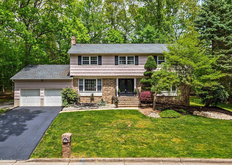 Beautiful 5 bedroom center hall colonial in highly sought out Triangle Oaks. As you walk up the entrance way you are greeted by the peaceful sounds of the Koi pond. A double entry way leads you to a two story foyer with granite floors. This home boasts an updated eat-in kitchen with stainless steel appliances, granite countertops and a center island. Entertaining is made easy, with flowing floor plan, oversized family room with wood burning fireplace, and wood flooring throughout. 5 bedrooms upstairs allow space for guests, and perfect for a home office as well. Bathrooms were just redone with subway ceramic tiling, and Mohawk laminate wood flooring. Master bathroom with walk in closet. After a long days' work, retreat down to your finished basement with a custom 12ft bar with Kegorator