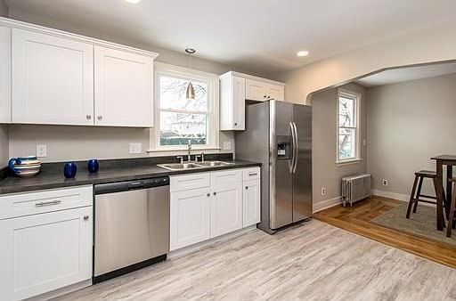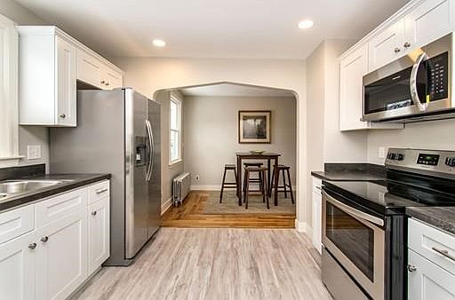 There's no place like home! Highlighting a bright and airy flr plan & 8' ceilings throughout the first flr. A fantastic kitchen features newer SS appliances, cabinetry, counters & flooring (all updated in 2019) opening to the dining rm that shines w/ beautifully refinished hardwood floors sprawling into a spacious living rm making entertaining a breeze! Off the living rm, cozy up in the adorable sun rm that features warm cherry flrs. The left wing offers 2 bdrm's featuring the richness of gleaming maple flrs & an updated bath. What a great find with dual master bdrm's on either the 1st or 2nd floor! Entering the top of the stairs waits the perfect landing for a potential to add a 2nd bath or make a cozy spot featuring newer (2019) wall to wall carpeting throughout. Second flr also features a divine larger master bdrm & a 4th bdrm. Outdoor entertaining begins here with a fully fenced in yard & shed for extra storage. Replacement windows upgraded throughout (2019). This is a HOME RUN!
