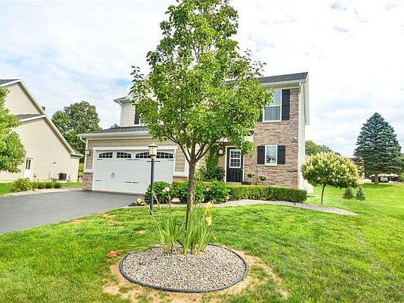 Penfield living with highly sought after Webster schools, 2 miles from city amendities. Why wait to build, it's all right here with all the extras. All new flooring throughout, extra 700 sq feet in finished basement. 20k in landscaping alone, custom kitchen with stainless steel appliances, stove is new and cost 3k. Gas fireplace in the winter and central air in the summer. Extra large master closet and new sump pump.