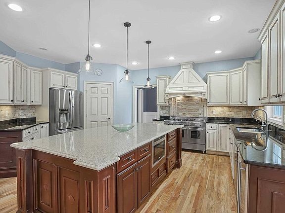 This spectacular home located within The Legends golf community is for the most discriminating buyer! Absolutely stunning, the 5800 sq ft Contemporary Colonial has not one, but two, grand staircases - one in the main foyer and the 2nd uniquely centered in the open concept floor plan, visually connecting the formal living room, dining room, family room, & 'the heart of the home' - a fabulous professional chef's kitchen. Granite countertops, stainless top-of-the-line appliances (including a 48 inch, 6 burner stove, & double ovens), huge pantry, extra-large island, wine cooler, and balcony deck is perfect for entertaining. A stone faced fireplace is central to the family room which opens into the sunroom and another deck. Work from home in a private office with French doors. And escape from the world in your own luxurious master bedroom suite & spa bath, or entertain for the weekend with a fully equipped guest suite on the lower level. There is so much more & must be seen to appreciate.