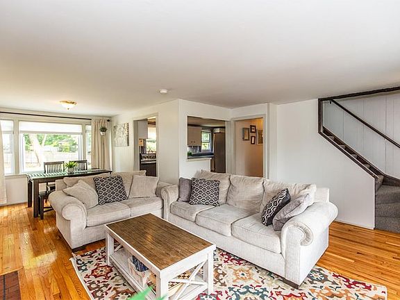 Room for the whole crew! This bright and open Cape features four bedrooms, a huge eat-in kitchen plus a dining area, sun room and recreation area in the lower level. Seated on close to a third of an acre, the property boasts a fenced yard with stone patio and outdoor fireplace which is conveniently accessed through the sun room. The rear bedroom has a lovely bay window that overlooks the back yard. Enjoy the peace of mind that comes with a two year old roof!