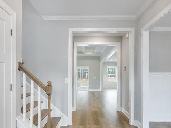 The Topsail Plan by Hardison Building is an elegant, open, two story home with over 2800 sq ft and sits on 1.31 acres! A chefs kitchen with gas range and quartz tops with a huge island opens to the living room with a gas fireplace and shiplap accent wall. The kitchen also flows into a breakfast room and into a mudroom with a drop zone and has a separate office with a built in desk! The powder room downstairs has quartz tops. All bedrooms including the spacious master suite are upstairs. The master suite has laminate flooring. All 3 of the upstairs bathrooms have ceramic tile and quartz countertops. The Master bedroom closet and pantry have wood shelving. This home has a lot of natural light and a covered porch looking out to nature of this large lot! Saratoga is in the Topsail school district. This home is Move in Ready. All photos/ videos are of a similar home.