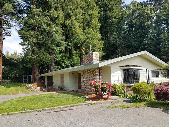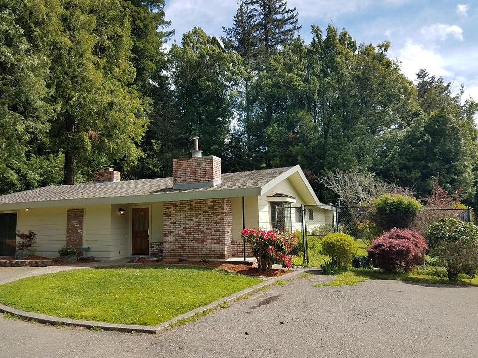 Country living at it's best. Beautifully refurbished home in private setting midst the beautiful redwoods. This large three bedroom home has just had a lot of attention with new floors and carpet throughout and fresh paint, new recessed lighting as well as new light fixtures and features an open floor plan. The living room features a beautiful stone fireplace with library or office to the left. The family room, which also has a fireplace, has access to the outside which opens unto a secluded back patio. The master bedroom has its own redwood deck, Jacuzzi tub, cedar closet, new carpet, tile shower and walk in closet off the bathroom. Also has a gas fireplace. Lots of light from the skylight and plenty of windows viewing your own redwood forest. Third bedroom has its own entrance with lots