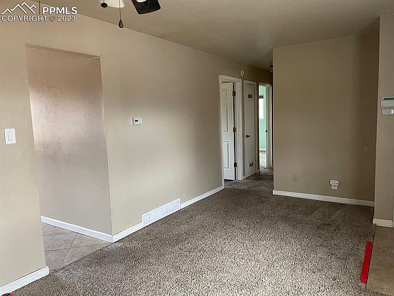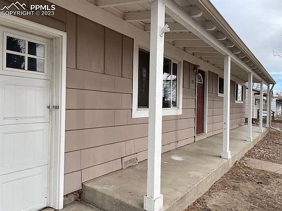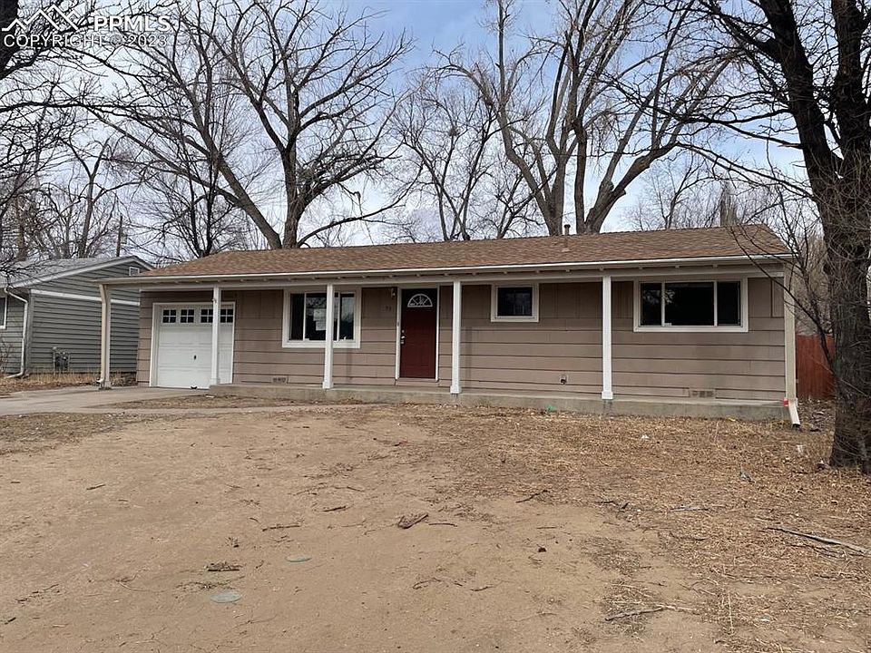 Great starter home with all main level living! Covered front porch beckons you into the home. Large living room with tiled entry and a entry closet. White six panel doors throughout home. Large country kitchen features tile flooring, an abundance of cabinets, granite tile counter tops and all kitchen appliances. A door from kitchen opens to the fenced backyard. There is plenty of room for a good sized kitchen table. One of the secondary bedrooms has luxury vinyl flooring. The master bedroom has carpet and is a nice size. The 3rd bedroom has carpet and the closet is currently set up for the laundry area. There is a full bath of the hallway and there is built-in cabinets for linen storage in the hall. There is an attached one car garage with a garage opener. There is a nice sized storage shed in the fenced backyard. The roof was new in 2018 and the furnace is approximately 13 years old. Close to shopping and an easy commute to Fort Carson!