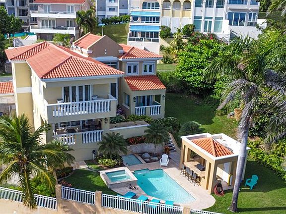 53 Shell Castle | Hillside Oceanview Residence – Palmas del Mar Perfectly positioned on the scenic hillside of Palmas del Mar, 53 Shell Castle offers an exceptional blend of refined design, thoughtful layout, and sweeping ocean views. This Mediterranean Contemporary residence, completely renovated in 2018, embodies tropical elegance with an emphasis on light, openness, and seamless indoor–outdoor living. Spanning three levels and approximately 4,674 interior square feet, the home features 6 bedrooms, 6 full bathrooms, and 2 half bathrooms, providing ample space for comfortable living and entertaining. The interior is highlighted by double-height ceilings, abundant natural light, and striking architectural details, including a glass wall with eastern exposure at the foyer that frames the ocean beyond. The open-concept main level offers a harmonious flow between the living room, family room, and dining area, complemented by a wet bar ideal for hosting. The chef-grade kitchen is thoughtfully designed with an ocean-facing center island, double built-in ovens, and a 5-burner gas cooktop, making it the heart of the home for gatherings and everyday living. The lower level includes a media room and an adjacent guest bedroom and bath, creating a comfortable retreat for guests or extended stays. Throughout the home, multiple walk-in closets, balconies, and a spacious laundry room enhance functionality and comfort. Outdoors, the property truly shines with an expansive entertainment area featuring a pool and spa, a covered wet bar with BBQ, and a convenient half bath—perfect for enjoying the Caribbean climate year-round. Additional features include golf cart parking, full power generator, and hurricane-resistant windows, providing peace of mind and practicality. Located within the well-established Palmas del Mar community, residents enjoy access to championship golf courses, tennis and pickleball courts, an equestrian center, a Pre-K through 12th grade school, marina, restaurants, shopping venues, and miles of beachfront. Just 40 minutes from San Juan, this home offers resort-style living with convenient access to the metropolitan area. Annual HOA Fee: $1,300 53 Shell Castle presents a rare opportunity to enjoy a truly elevated Caribbean lifestyle in one of Puerto Rico’s most desirable resort communities.