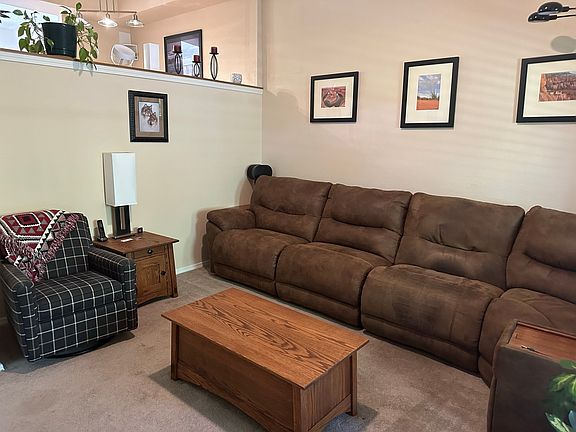 The upper level of the condo boasts two well-appointed bedrooms, each offering a peaceful retreat for rest and rejuvenation. The primary bedroom features a walk-in closet, an en-suite bathroom, and another private balcony with views of the Jemez Mountains and Los Alamos Ski Hill. The second bedroom also offers a comfortable sleeping arrangement, closet and built in storage shelves