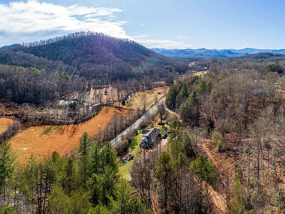 1940's farmhouse on approximately 2.32 unrestricted acres in gorgeous Cowee Valley! Calling all homesteaders- this property is perfect for your gardens, chickens, goats & hobby farm dreams! Fruit trees include peach, apple, plum, fig & blueberries. Sit on the front porch and listen to the loud creek across the street as you look at the beautiful mountains. In the spring the old plantings will provide a new surprise every day. The home features a living room w/propane heater, dining room, kitchen, 2 bedrooms & a bath with tub/shower combo. Windows have been updated. The laundry is located outside the kitchen for single-level living. The farmhouse needs much love and updating , but at this price-point you'll be able to fix her up to suit your needs, or build your dream home in it's place in this lovely setting. Old roadbeds in place lead you to exploring the woods. Great spot for your RV, too. Notes- 2 larger metal sheds will be removed at closing, old outbuildings & smaller metal shed to remain. Barn will be taken down unless negotiated w/a fast offer. New survey in progress. AS-IS, CASH-ONLY sale due to upgrades needed to home. There is so much potential here on "Snob Hill"!