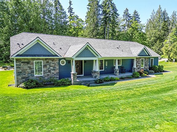 2017 custom-built home offers over 3200 sq ft of living space in a beautiful country setting on 2.47 acres, less than 10 minutes from downtown dining & shopping. Featuring 3 bedrooms, all with walk-in closets, 2.5 baths & a spacious & relaxing primary suite. Enjoy Acacia hardwood floors, tiled bathrooms, and carpeted bedrooms. The kitchen and bath have solid cherry cabinets custom-built by Ohio Amish artisans. Beamed & vaulted ceilings, a stone wood-burning fireplace, and a bonus room above the garage add charm. French doors from the Primary and Dining Room lead to a large stone patio. An oversized 3-car garage provides ample space. Located in the desirable Black Diamond area near Hurricane Ridge, Olympic National Park, and Lake Crescent.