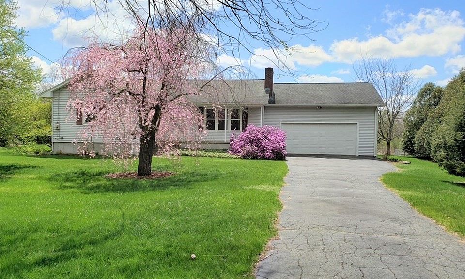 Welcome to 53 Stanley Street, an impeccably maintained and renovated three bedroom, two bath ranch. Two miles to the center of town with schools, shops and restaurants. The kitchen features a gorgeous bay window overlooking the expansive backyard. It also includes updated cabinets, countertops and a custom backsplash. It is open to the dining area with a glass slider leading to the lovely deck and Goshen stone patio. Solid white oak covers the floors in the living room, dining area and the bedrooms. The living room with fireplace has three large windows with a view of the covered front porch. The basement is spacious with laundry and a Buderus furnace. The deck door and windows were replaced in 2016 and the driveway will be replaced in June. There is an oversized two car garage that allows plenty of room for additional storage. The backyard abuts beautiful conservation land, the house is steps from Kiwanis Park fields and Wentworth Conservation land with an abundance of hiking trails.