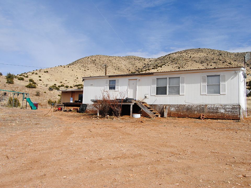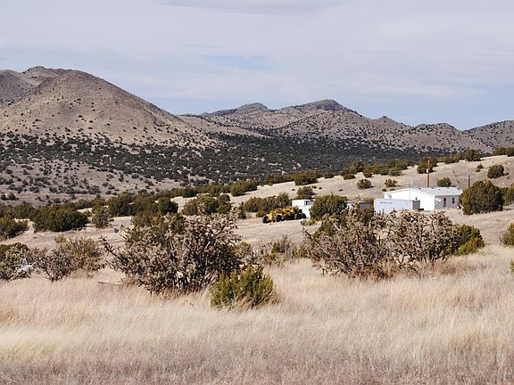 Acreage and home just 3 miles from Main st/hwy 60 MagdalenaProperty in this area does not come up for sale very often. No HOA. Diverse and gentle terrain, amazing mountain views, 2 sides fenced & easy access. 28X48, 3 bedroom, 2 full bath Palm Harbor doublewide mobile home. All electric, pellet stove for heat. The home Is not on a permanent foundation, has title. 2 storage buildings near the home and propane tank.The NE corner of the land touches state land near Granite mountain, then a little further up the FS road to the North is the Cibola National Forest.Survey map available, property corners marked. Recorded private road easement for access.Electric, Septic system and well.. Phone at the Forest road. Western NM telephone.