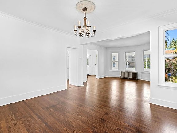 This charming single family home offers four bedrooms, one and a half bathrooms and a detached two car garage. Before going inside, you are welcomed by a beautiful enclosed porch that’s beaming with natural light. As you make your way into the spacious living area, you will start to notice that all of the hardwood floors have been refinished throughout the home and brand new window air-conditioning units have been installed. The eat in kitchen with adjoining half bath, has been completely renovated with brand new white cabinetry, quartz countertops, white subway tile backsplash, new recessed lighting and stainless steel Frigidaire appliance package. Directly off of the eat in kitchen, you will find a large recently painted deck that leads you to the backyard. The partially finished basement with brand new carpeting can be used as additional family room, and it includes a separate mechanical and washer/dryer area. This home is conveniently located close to shops, restaurants, and major transportation for those commuting to New York City.