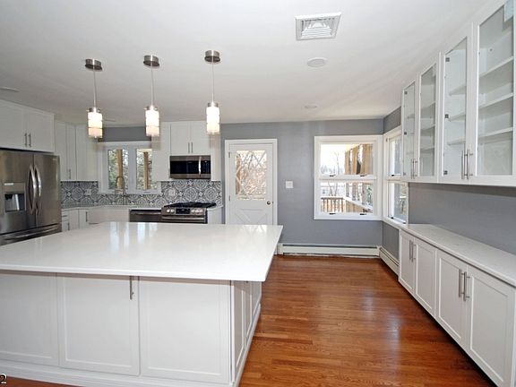 This beautifully renovated (2019) 2-story home is situated on a lush 1/2 acre parcel within walking distance to rail service to Manhattan & moments from Rt. #78. A surprisingly open interior reveals a brand new, eat-in kitchen featuring gleaming white cabinetry, new stainless steel appliances and a massive, center island of white quartz accented with grey veining. Beautifully refinished H/W flooring is the perfect counterpoint to the new kitchen; and also run throughout both levels l & ll. Just off the kitchen lies a seasonal porch overlooking the private rear grounds. Level ll offers 3 bedrooms, a new hall bath & those signature H/W floors while a large, recreation room & 2nd full bath lie just a few steps down. An unfinished, full height, basement houses the mechanicals & offers plenty of room for storage.
