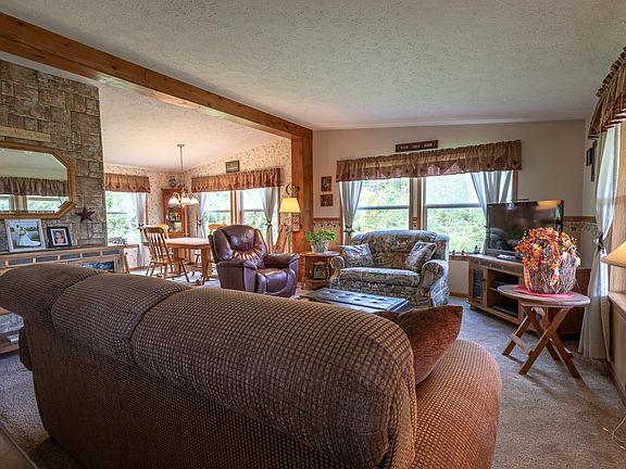 This Charming 2006 build brings to you a wonderful opportunity to own new, and have the privacy of nearly 6 acres of land at your leisure! Offering 3 Bedrooms and 2 Full Baths sitting on a beautifully poured foundation this home brings plenty of space and living to any type of buyer! Featuring just under 1,500SqFt of living space you will find that the open layout in this home and full basement make it feel even larger. Whether you're overlooking the fall foliage from the front porch or enjoying the cozy ambiance inside, you'll feel right at home the minute you step onto this property.