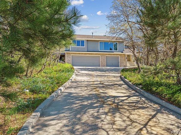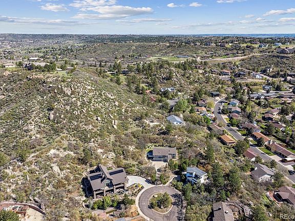 Spectacular Front Range and Pikes Peak Views on 2.179 acres. Perched high on a secluded cul-de-sac in the heart of Castle Rock, this 4 bedroom, 3 bathroom home offers breathtaking views giving you the top of the world feeling. The double-door entry with beveled stained glass, vaulted and high ceilings, along with a skylight in the foyer, create a welcoming, light-filled space. The expansive Great Room is the centerpiece of the home featuring a gas-log fireplace framed by floor-to-ceiling shelving and showcasing exceptional views. Adjacent to the Great Room is a flexible dining area for both formal and informal entertaining—along with a convenient wet bar. The spacious kitchen boasts wood flooring, abundant cabinetry and counter space, a walk-in pantry, architectural niches and a separate breakfast room with direct access to a covered patio and an uncovered viewing deck taking in the panoramic scenery. The Owner’s Retreat is a true sanctuary, complete with large picture windows, built-in bench seating and private access to the deck overlooking the mountains. The 5-piece en suite bath includes a soaking tub, separate shower, double sinks, private water closet and a large walk-in closet and skylights. 2 additional well-sized bedrooms on the main level share a full bath. An open and wide staircase leads to the lower level family room, a 3rd garden-level bedroom and full bath—plus laundry, generous storage space, and access to the oversized finished 3-car garage. Enjoy the peace & privacy of this expansive lot with endless possibilities for outdoor living. This rare find includes numerous recent updates: carpet '25, interior paint '24, kitchen frig '24, new garage door lift system '25, Trane furnace & A/C '21, roof '19, TREX Transcend deck '19, exterior paint '25, front windows, primary bath skylight & primary bedroom deck door '22. This unique acreage property offers a perfect blend of mountain serenity & convenience to Castle Rock amenities. Floorplan in supplements.