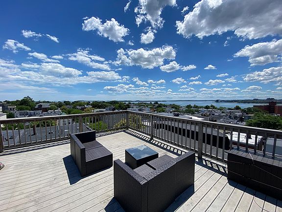 SEPTEMBER 1. Thomas Park two bedroom two bathroom home with direct WATER VIEWS. The property has a private deck off livingroom as well as large common roof deck with fantastic water and city views. Park located directly across from building. Property boasts hardwood floors, in-unit laundry, central air heat and AC, gas fireplace. There is a large open livingroom to kitchen with grainte counter tops, stainless steel appliances, maple cabinets and large Island. One of South Boston's top locations. VIDEO AVAILABLE. First, last, $1000 sec dep, broker fee all due at lease signing.