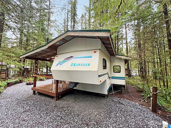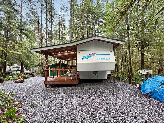 Perfect Glen starter property! This 1997 fifth wheel has been well cared for and is a turn key opportunity to making great memories. Outside there’s a huge covered deck allowing you to enjoy nature year-round, plus a shed, wood shed, fire pit and picnic area. Inside there are three sleeping spaces accommodating up to six people. Full kitchen with stove, fridge and microwave. Smart storage throughout! Forced air heat and A/C for the summer. The community is zoned recreational for 120 days/year of use and located just 15 minutes from Silver Lake and 45 minutes from the Mt. Baker Ski area. Amenities include two pools, hot tub, tennis court, library, laundromat, clubhouses, 24/7 security, gated entry, play areas & more.