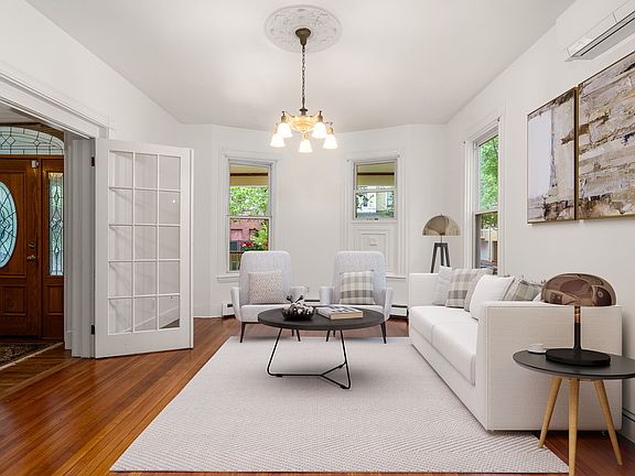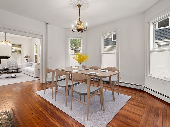 Beautiful 4BR 3 1/2 BA Queen Anne near Harvard in the heart of Mid-Cambridge, close to everything! From the inviting front porch, enter the lovely first floor foyer with elegant staircase, leading to a light-filled living room. Off the living room is the formal dining room with bay windows and easy access to the large comfortable eat-in kitchen. Kitchen has SS appliances, island, stone countertops, and solid cherry wood cabinetry with plenty of storage. There is a laundry closet, plus sliding glass doors out to a sunny deck and a back garden. There's a 1st flr half bath. 2nd floor primary bedroom has a newly renovated ensuite bath and walk-in closet, plus 2 generously sized bedrooms and a newly renovated 4-piece hall bathroom. 3rd floor has a lg bedroom with ensuite bath, and separate flex room, perfect for office, or addl bedroom, plus kitchenette. 2 car garage plus driveway parking for 2 more cars. Minutes from Harvard Sq, Cambridge Public Library, park, Harvard Museums and campuses. Tenant responsible for utilities. Tenant responsible for broker fee of one month rent at lease signing. No smoking. Last month's rent due at lease signing. Small pets considered on a case by case basis. AC is provided by mini-splits throughout the house.