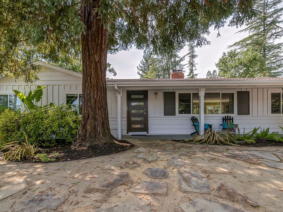 An exciting Danville staycation awaits you located on a quaint cul-de-sac. Sitting on a flat .34 acre lot, this mid-century modern single story home features an open floor plan with 3 bedrooms, 2 updated bathrooms, spectacular eat-in kitchen and amazing backyard retreat. Anchored by a gorgeous stone fireplace, the family and dining room combination offer plenty of space for large gatherings. The gourmet kitchen is appointed with stainless steel appliances, breakfast bar, granite countertops, beautiful backsplash and panoramic views of the backyard. The primary bedroom showcases a walk-in closet, hardwood floors, access to a private deck and backyard, as well as its luxurious ensuite featuring a double head shower and built-in cabinetry. Just full of serenity, the relaxing backyard presents a sparkling Pebble Tec pool with solar heat, waterfalls and separate hot tub, covered patio, garden shed and bountiful amounts of space for gardening all surrounded by drought resistant landscaping.