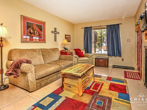 How about a fully furnished 2 BR 2 Ba unit just one blocks from the Angel Fire Resort Ski and Mountain Bike hill?! Great rental potential when you're not enjoying it. Set up to sleep 8. Electric log fireplace, deck overlooking the ski area with views, washer/dryer in unit and easy year 'round access, and it's all on one level.