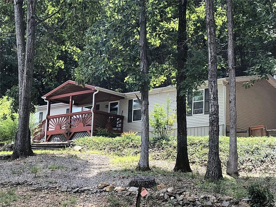 Very nice doublewide on Holiday Island. 3 bed, 2 bath plus screened in porch and walk through rock garden with sitting area. This is a 1999 Dutch Housing model mobile on two lots features a formal living room, nice kitchen dining area that is open to the family room with wood burning fireplace. The Back yard/lot has been cleared of underbrush creating a beautiful park showing the natural rock designs of the Ozarks.