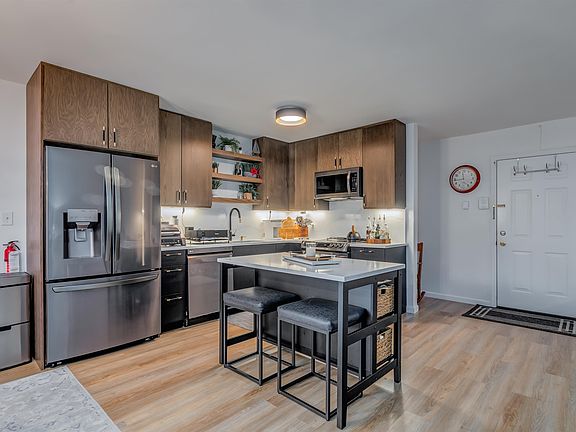 Welcome home to this stunning one bedroom condo, perfectly situated in a meticulously maintained building. This stylish home boasts an open concept living, dining and kitchen space with gorgeous new flooring throughout. The modern kitchen is a true highlight, featuring custom cabinets and hardware complemented by black stainless steel appliances, quartz countertops, and matching backsplash. The spacious bedroom offers room for a king-size bed. Enjoy the convenience of in-unit laundry and ample storage space, along with a dedicated parking spot. Just steps away from public transportation, shopping, restaurants, and beautiful Stephen R. Gregg Park, this condo offers you the best of city living with a touch of nature. Whether you're a first-time buyer or looking to downsize, this condo provides the perfect blend of comfort, style, and convenience. Don’t miss out. Call today for a private showing.