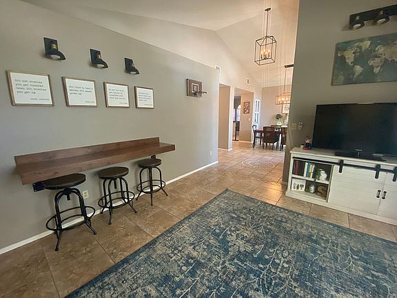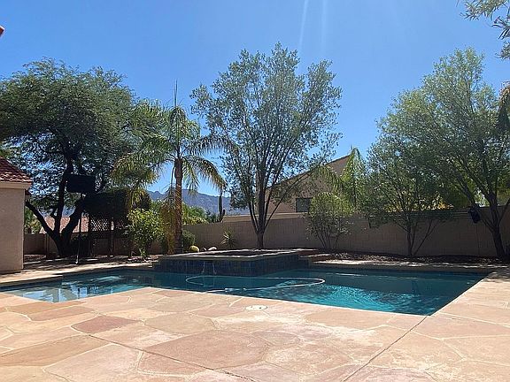 Updated home ready for you and your family to move in! Beautiful floor to ceiling wood burning fireplace with included 65" mounted flat screen tv. Enjoy meals overlooking the pool in your custom built table and bench. The kitchen and bathrooms were updated with quartz countertops and marble backsplash. Backyard oasis with large trees and a great heated pool for swimming laps as well as a relaxing spa. New sliding door in master bedroom for an easy escape to your back patio for morning coffee and mountain sunrise. A/C unit replaced in 2019. Come see this home, it won't last! ** Offering 2% agent commission