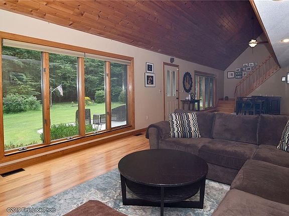 Only 26 minutes to the RI line - such pride in Ownership and tranquility is what you will find on the 6.75 acres of this well-maintained Cape with an open floor plan. This home features an updated kitchen with granite counter tops, stainless steel French Door refrigerator, duel-fuel range and dishwasher. There are hardwood floors, ceramic tile in kitchen and bathrooms. The first floor boasts a grand dining room and living room space and also has a master suite/potential in-law and laundry is easily accessible in the spacious mud room at one entrance of the home. The second floor will provide an additional master/guest suite and third bedroom with a full bath. Enjoy the cooling central air system which will provide comfort on those hot days/nights. The lower level has an additional bedroom/office and a great bonus room and plenty of storage. For outdoor lovers, you can enjoy the front patio overlooking a serene vista of perennials and hiking trails or enjoy a great meal on the back deck. The exterior also has a newer roof with a rain handler water system with heated strips on high side of roof ridge. Great access from the walk out basement which has a wood/oil furnace and a whole house generator - hookup and generator included. Four car garage, spacious and has 4 automatic door openers. Throughout the trails you will find neatly stacked woodpiles and is directly across from Goodwin State Forest and Pine Acres Lake where you can enjoy hiking, biking, walking and horse trails.