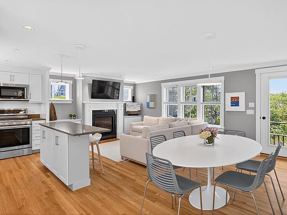 Welcome to this sun-filled, impeccably maintained West End townhome, thoughtfully designed across three levels and abutting conservation land. The open main floor living/kitchen space features crisp millwork, a gas fireplace, shaker cabinetry, quartz countertops, KitchenAid appliances, and a center island. Step out to your private, fully enclosed deck--a substantial outdoor extension of the living and dining areas that also includes an outdoor shower. The second level offers a generous bedroom with en suite bath, a powder room, and in-unit laundry. Upstairs, the top-floor suite boasts a walk-in closet, skylit bath with dual shower, and balcony with pastoral views. Offered turnkey and move-in ready (with some exclusions), this home allows weekly rentals--ideal for personal use or investment. With two parking spaces, solar panels, and a location near the beach and town, it's the best of Provincetown living.